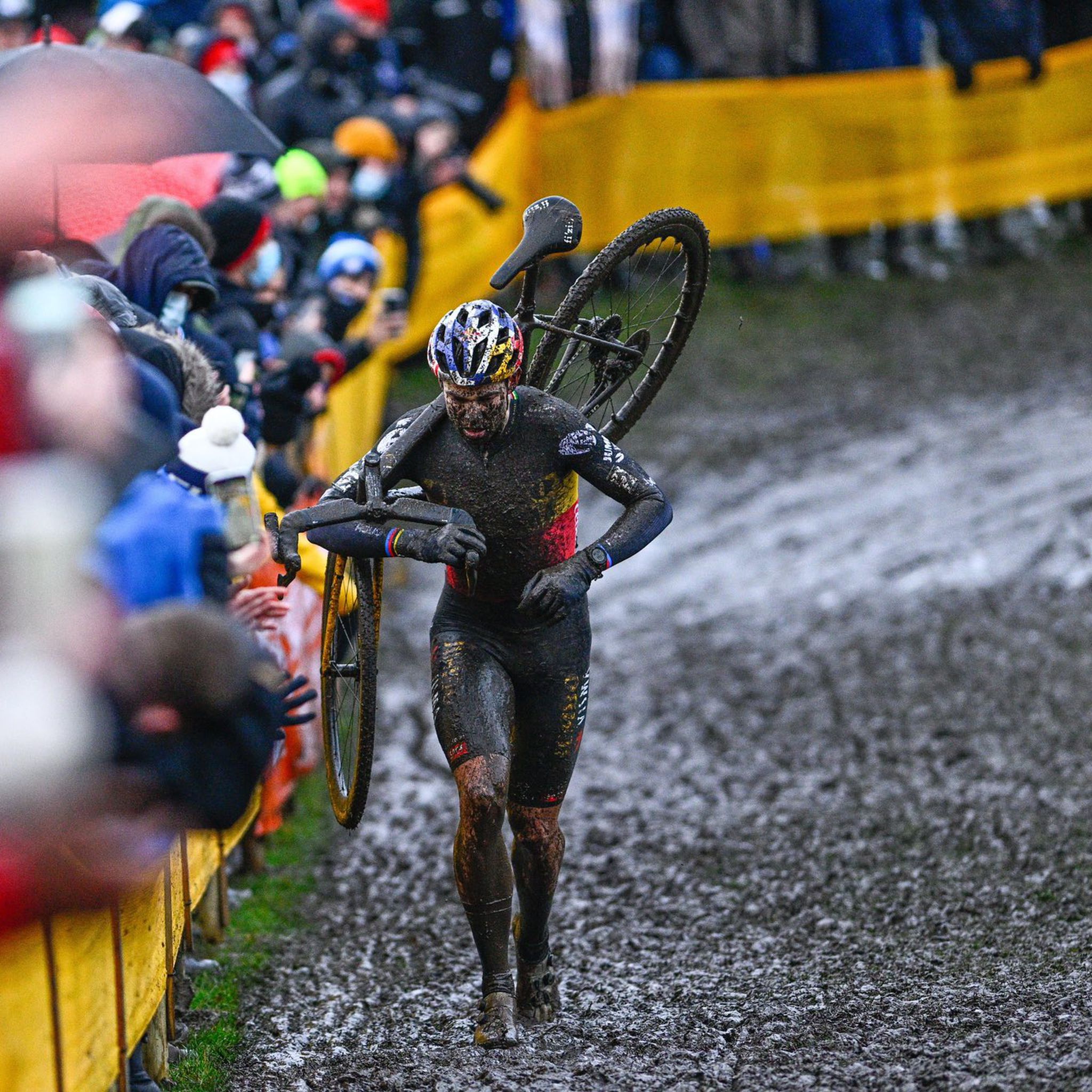 Popoldne sem pogledal še dirko svetovnega pokala v Dendermondeju. V Belgiji, domovini ciklokrosa, ne da ni bilo niti pol toliko gledalcev kot v Stožicah – sploh jih ni bilo. Res so dirkali Wout van Aert, Mathieu van der Poel in Tom Pidcock – ni pa bilo dvakratnega zmagovalca Toura, ki je letos pobral praktično vse nagrade za najboljšega kolesarja na svetu. Tega fanta si želijo ljudje videt. Pravzaprav je res manjkal samo še Primož Roglič, na to sem tudi sam večkrat pomislil. In bi v medijih spet brali slaboumne naslove, kot »Poglejte, kaj je Pogačar/Roglič na blatni dirki naredil Rogliču/Pogačarju«.