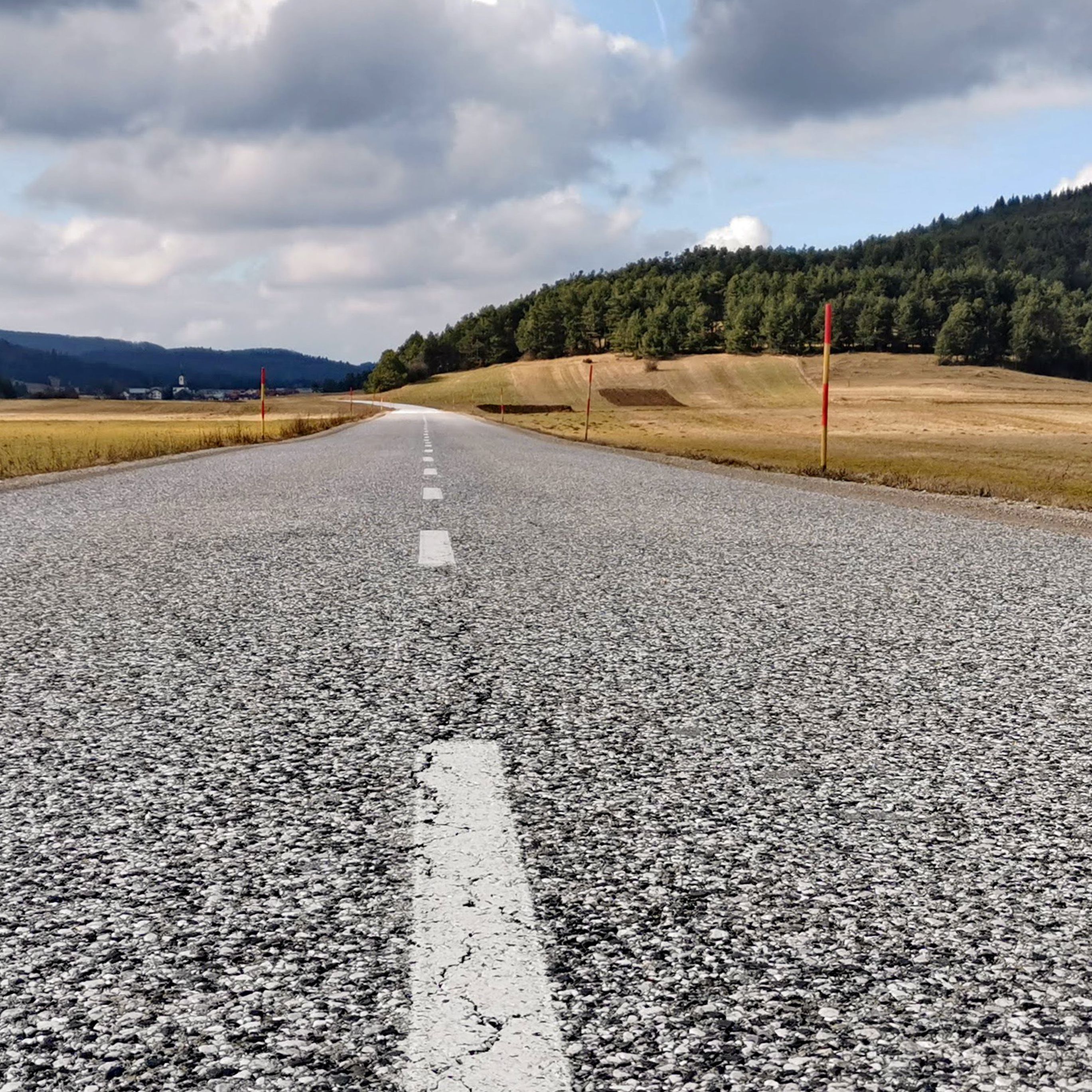 Sicer pa blažen mir z nekaj izjemami. Dva zajca sta skočila čez cesto. Kar velika ujeda se je teatralno spustila, kot da je za pristajalno stezo izbrala cesto, ampak se je potem spet elegantno vzdignila nad drevje. Dacia. Bager goseničar, ki sem ga prehitel po desni. Na gozdnih cestah se vozi na lastno odgovornost.